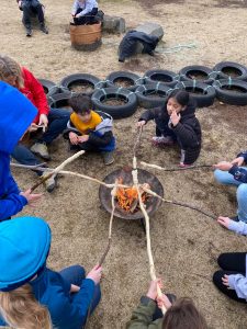 Veðrið hefur leikið við okkur nú í maí og við stóðumst ekki mátið að skella okkur út og grilla brauð á greinum um daginn. Við sungum upp úr Skátasöngvum, undir styrkri stjórn nemanda 5. bekkjar og undirtektir voru afbragðs góðar.