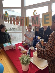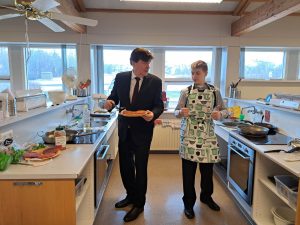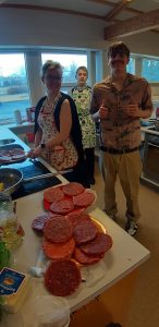 Yngri hópurinn fékk pizzu úr smiðju Kristjönu matráðs en sjá mátti JFK, Charlie Chaplin, Pablo Escobar, Lucy Ball og jafnvel Einstein sjálfan steikja handa unglingunum hamborgara.