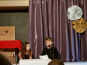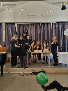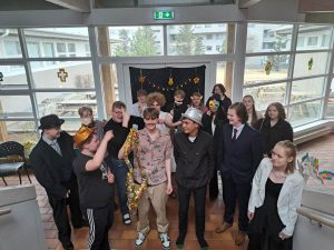 Árshátíðin okkar er smá í sniðum og við leggjum mikið upp úr heimagerðum skemmtiatriðum og aðkomu sem flestra nemenda. Í ár var svo sannarlega enginn hörgull á skemmtiatriðum og unglingarnir náðu ekki einu sinni að klára sína efnisskrá, jafnvel þótt sjálf Jane Austen og Sókrates héldu utan um skipulagið. Við eigum síðustu leikina bara til góða.